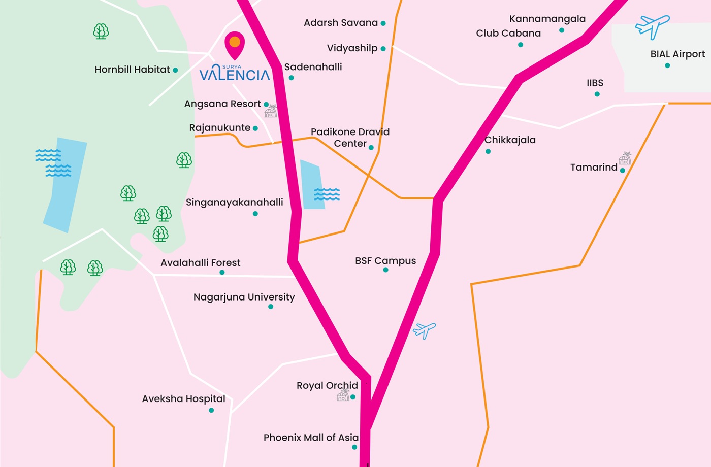 Surya Valencia Spanish Villas by Surya Developers is a luxurious gated community located along Yelahanka-Doddaballapur Road in North Bangalore, spanning 9 acres of lush greenery. This premium enclave offers meticulously designed 4 and 5 BHK row house villas, with optional additional rooms for home offices, studies, or yoga studios, blending elegance, functionality, and modernity. Residents can enjoy ultramodern amenities such as a swimming pool, state-of-the-art gymnasium, and a stylish clubhouse, while surrounded by serene landscapes, tree-lined pathways, and expansive gardens. The community prioritizes safety with advanced security systems and 24/7 surveillance. Beyond luxurious living, Surya Valencia fosters a vibrant social environment through cultural events and recreational activities, creating a sense of community and lasting memories. Experience the perfect harmony of sophistication and tranquility at Surya Valencia Spanish Villas, where every day is extraordinary.
